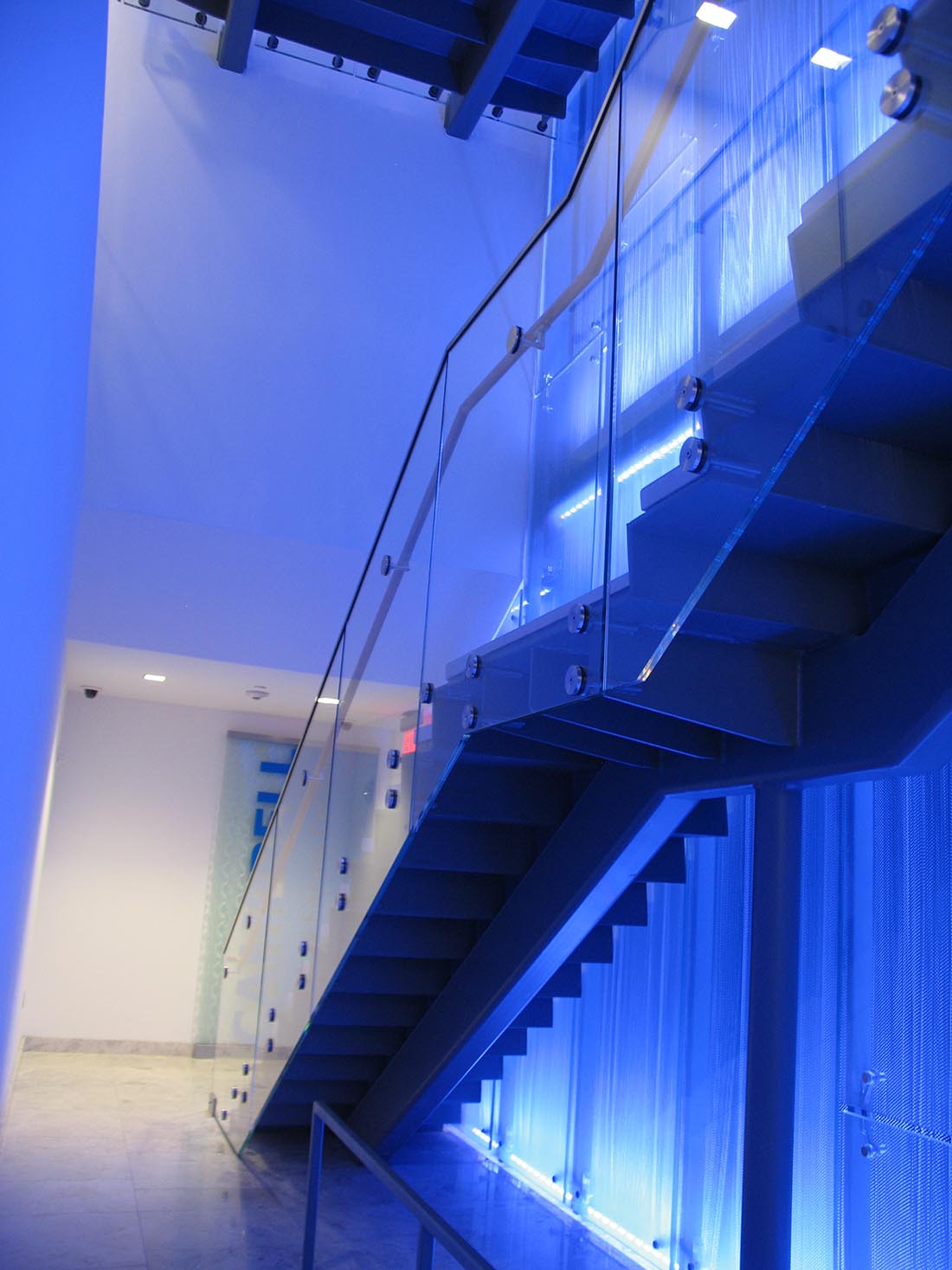 Monumental Steel Stair with Glass Rail Set on Standoffs